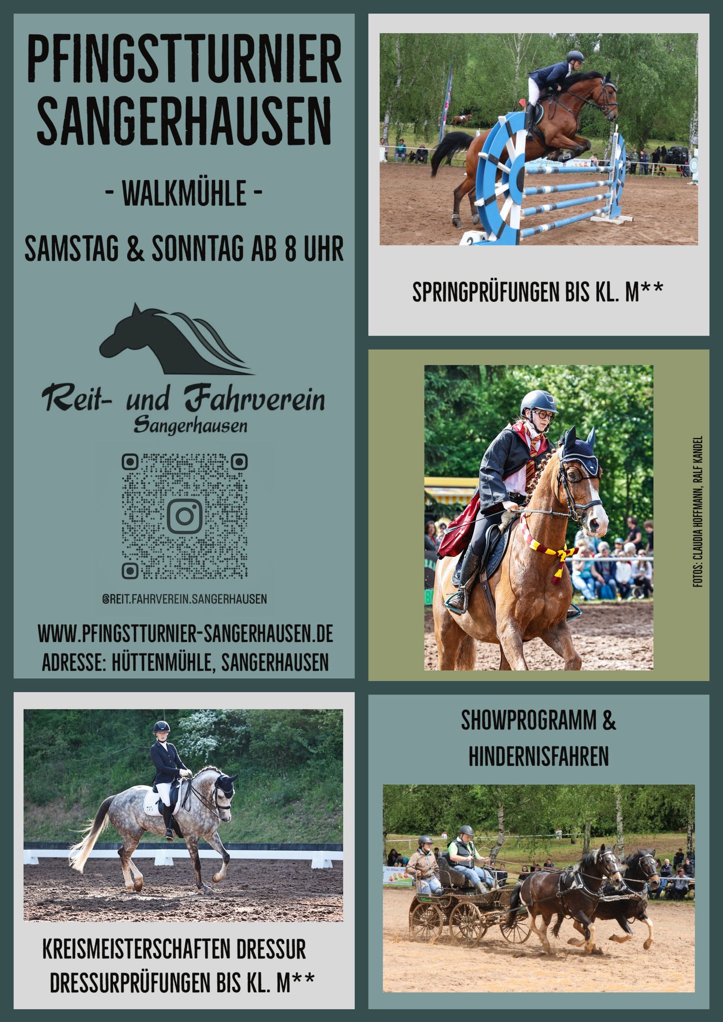 beim Pfingstturnier Sangerhausen, der größten und wohl auch traditionsreichsten Pferdesport-Veranstaltung der Region. Unser Reit-, Spring- und Fahrturnier ist nun schon seit mehr als vier Jahrzehnten jedes Jahr zu Pfingsten ein sportlicher Höhepunkt für Ross und Reiter aus nah und fern.